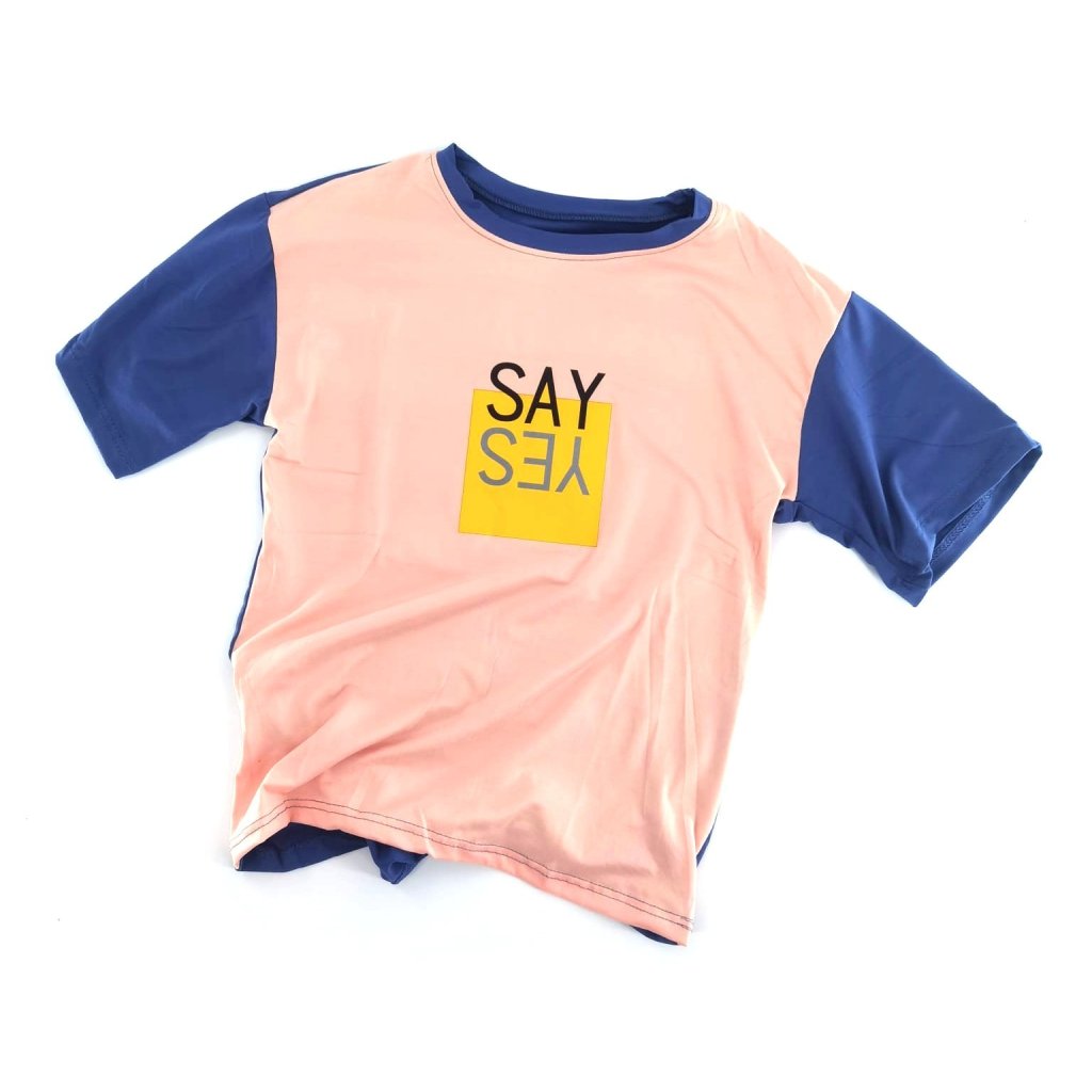 冰絲Tee 藍/杏雙色 SayYes 印花 SIZE S