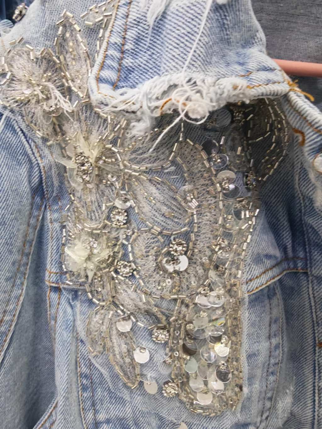 ✨ 閃耀登場|高雅時尚珠片刺繡牛仔外套