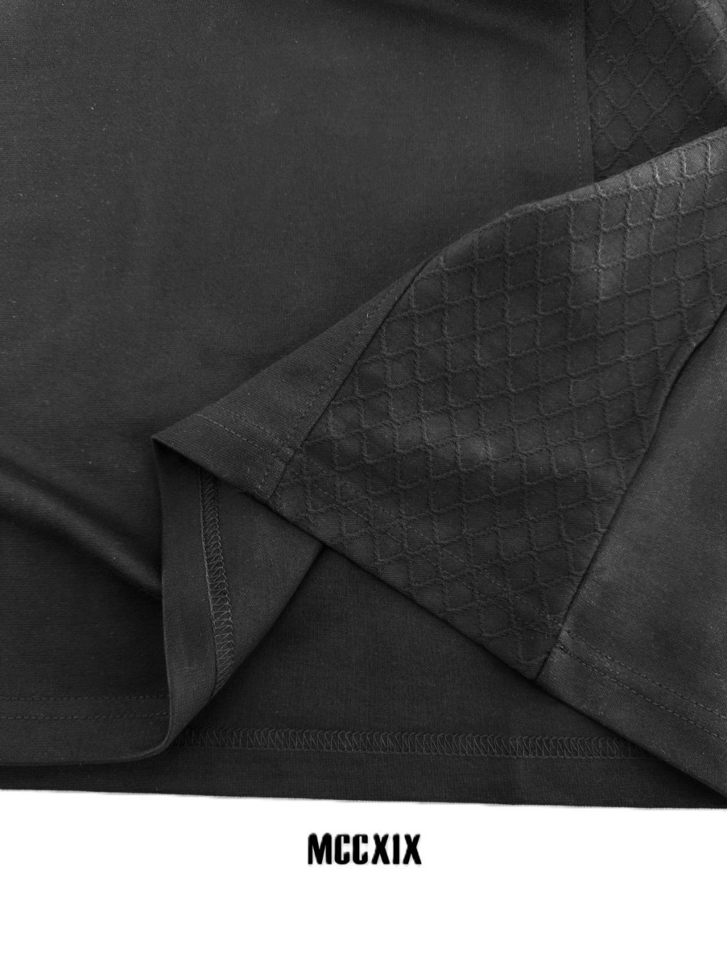 沉穩黑色,撞上抽象山紋口袋,MCCXIX 呢款短袖T恤將街頭風格與自然靈感完美融合。左胸口袋採用獨特黑白圖案,猶如山嶺剪影,低調中見個性。側身拼接菱格紋理布料,增添層次感與設計細節,令整體造型更具視覺衝擊力。