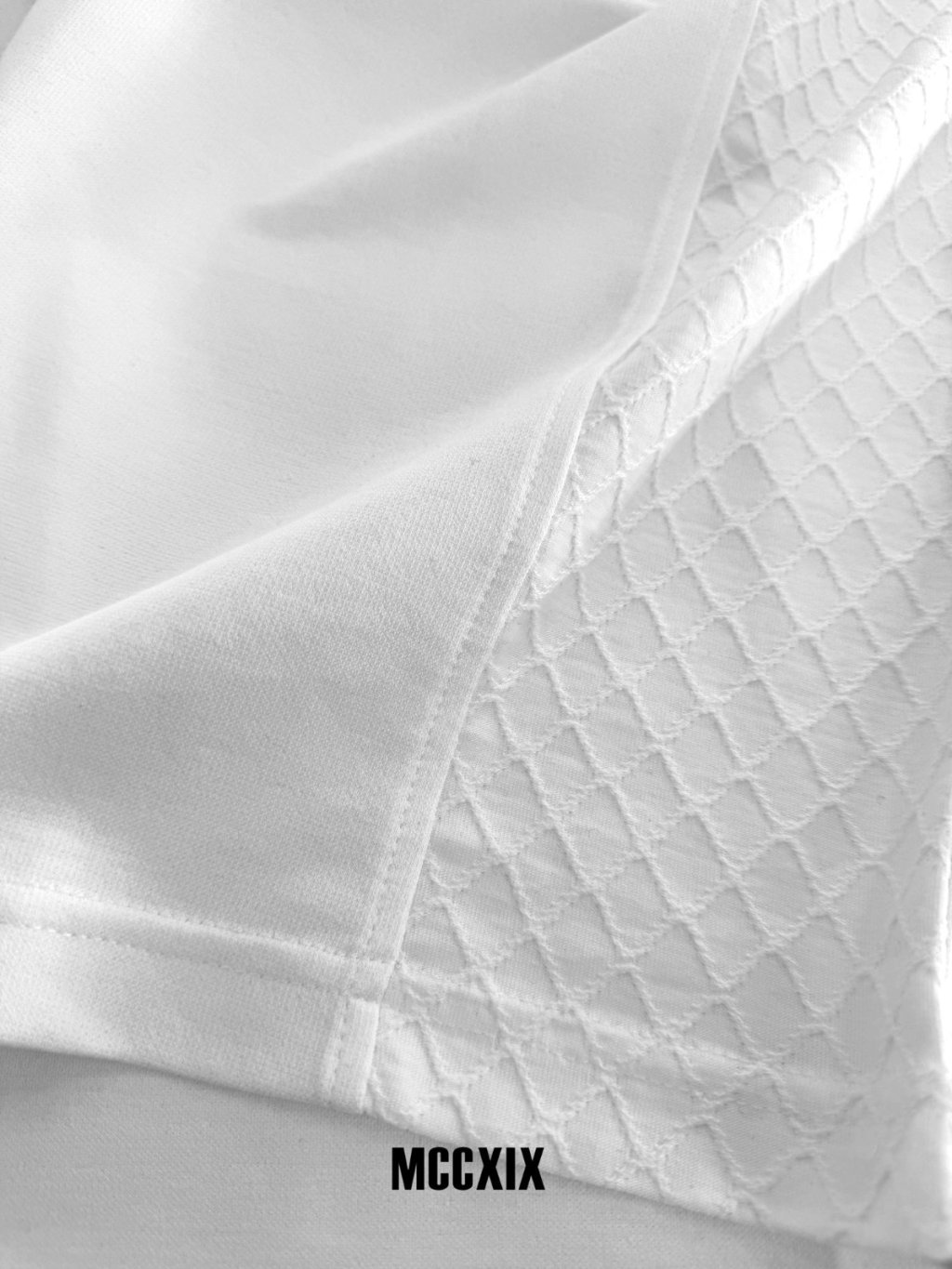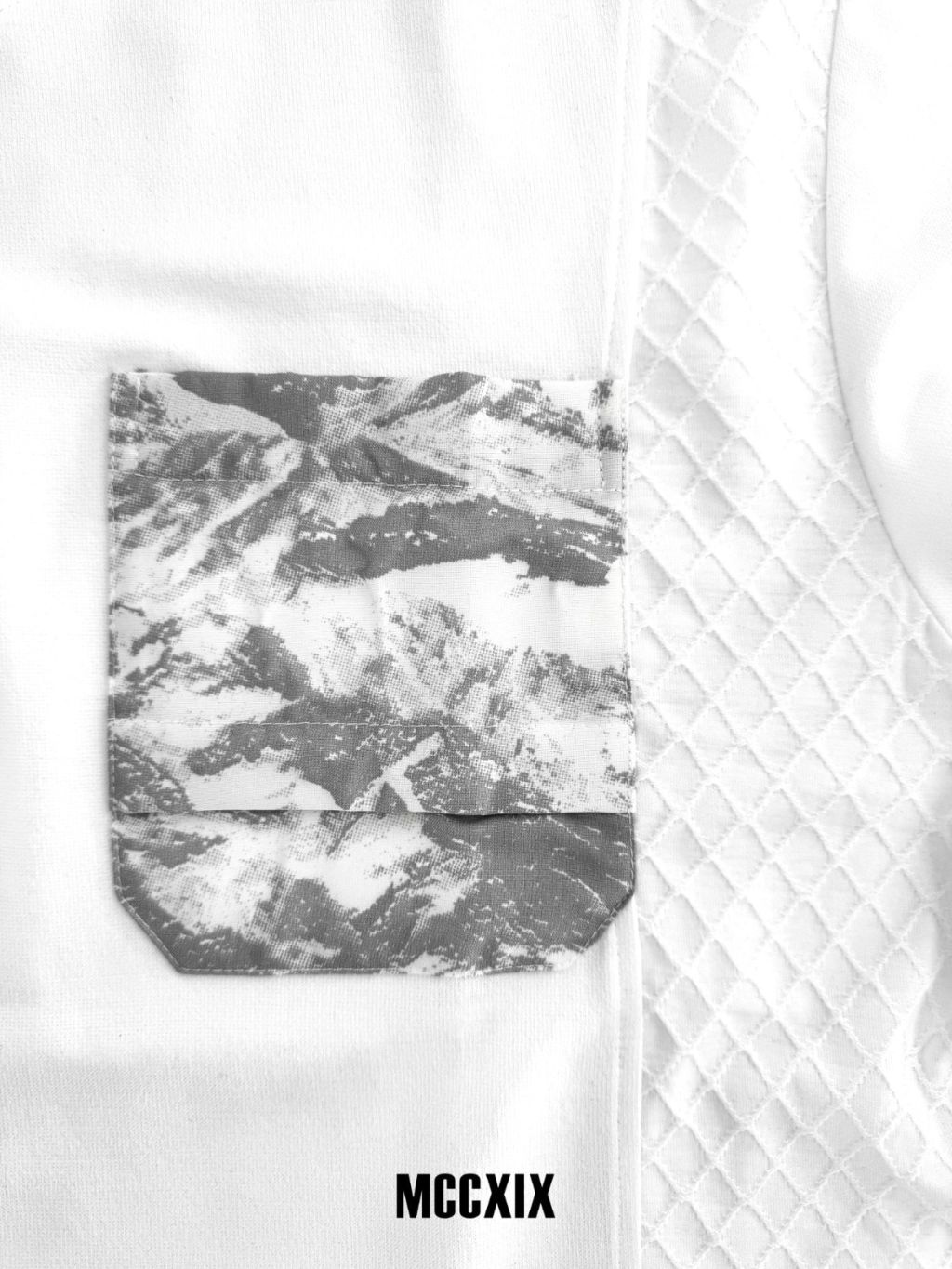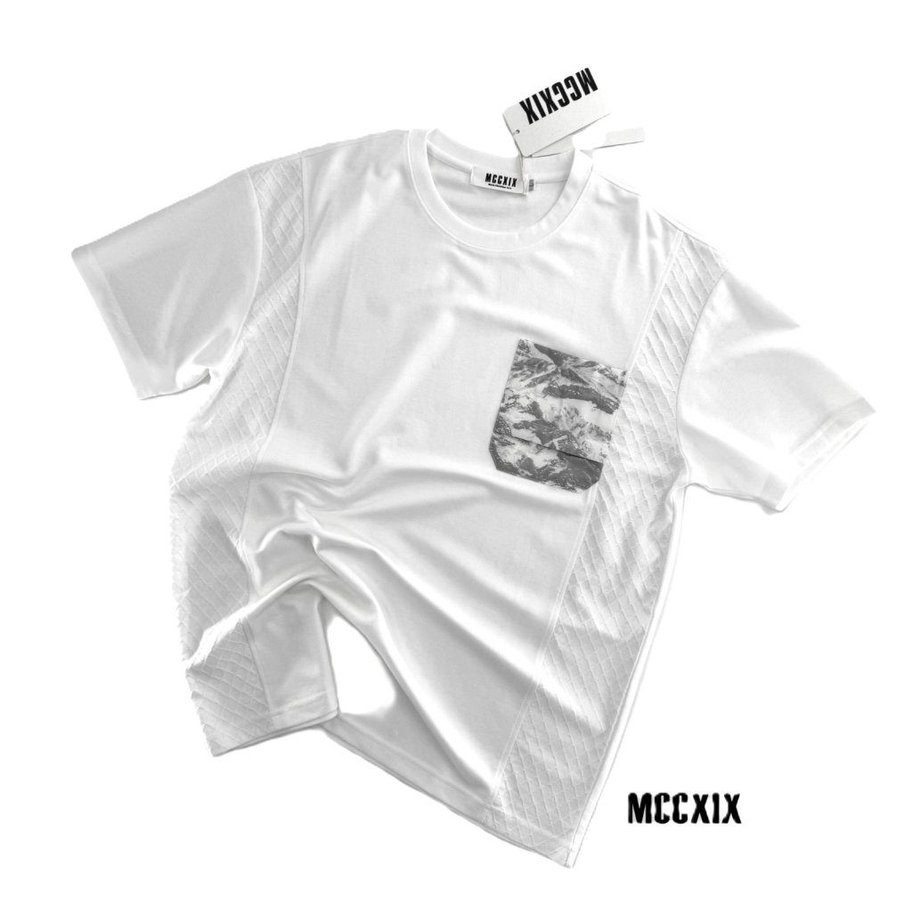 典雅白色,撞上抽象山紋口袋,MCCXIX 呢款短袖T恤將街頭風格與自然靈感完美融合。左胸口袋採用獨特高雅灰白圖案,猶如山嶺剪影,低調中見個性。側身拼接菱格紋理布料,增添層次感與設計細節,令整體造型更具視覺衝擊力。