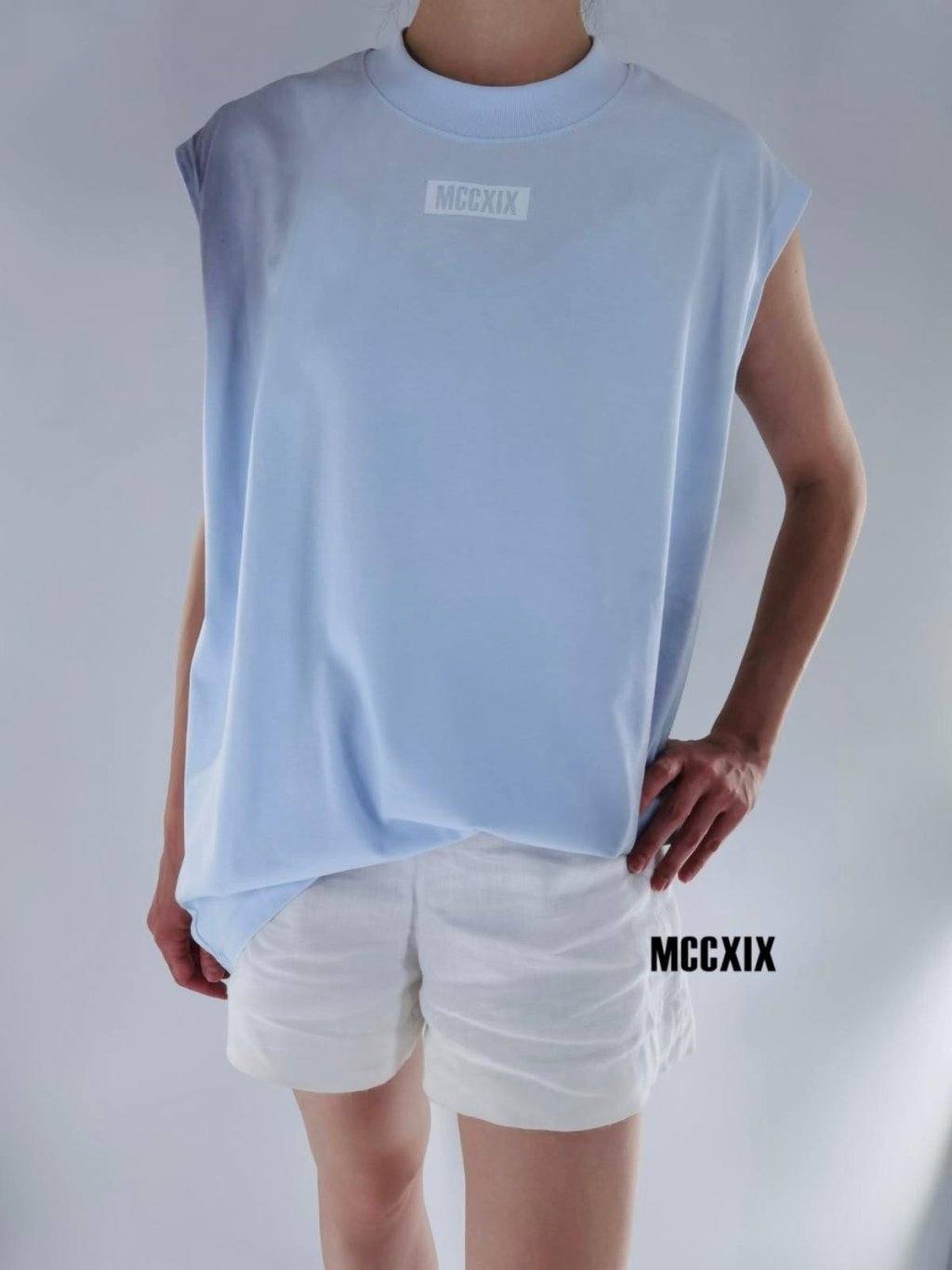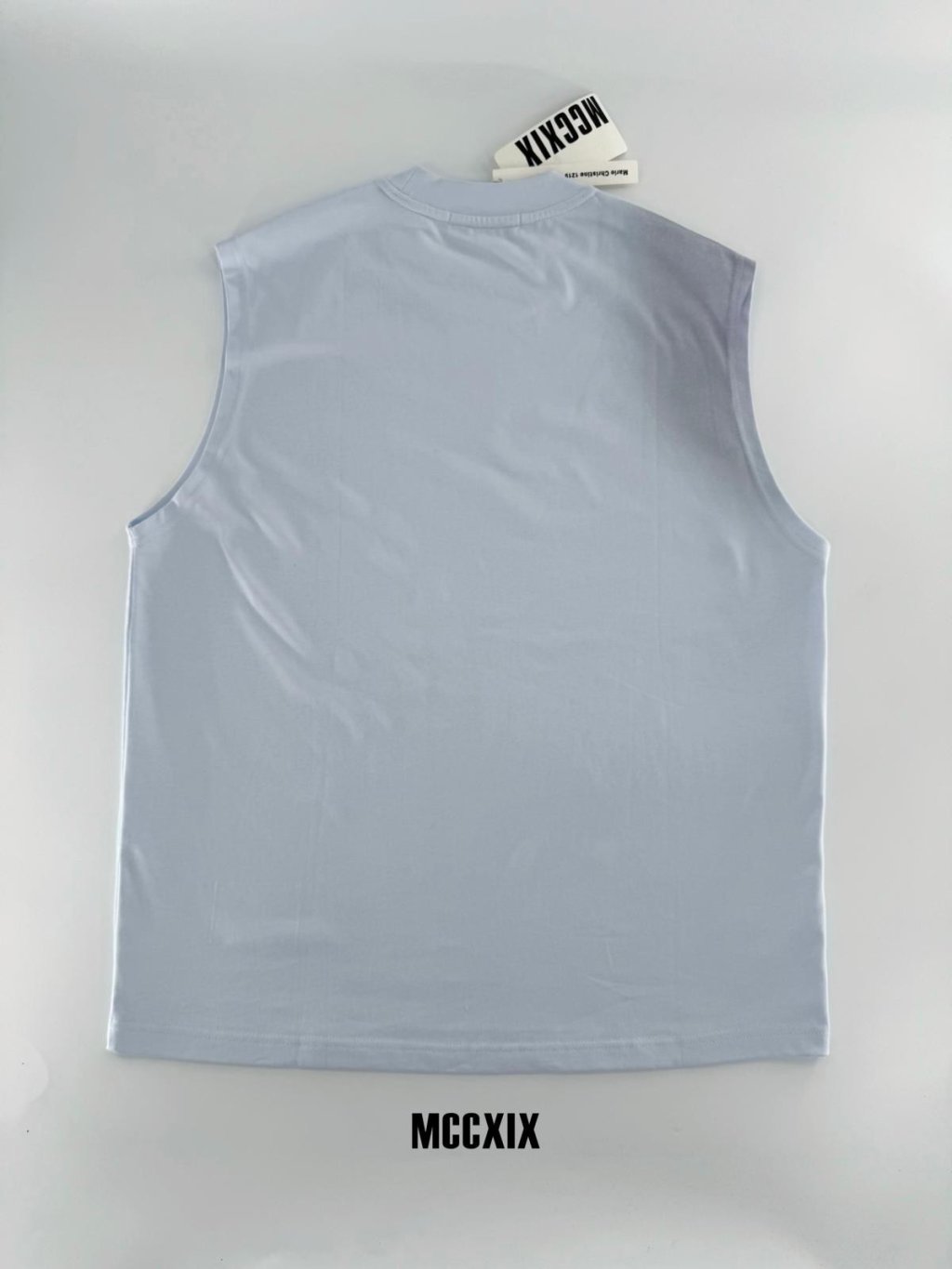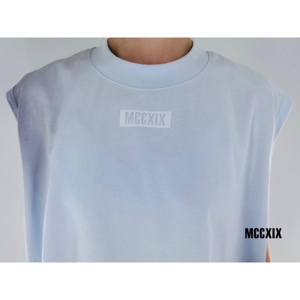 來自香港設計師品牌 MCCXIX,這款無袖漸變Tee以清新藍調為基底,向下漸層轉化為深邃色彩,營造出如幻如夢的視覺張力。簡約高領設計,配以胸前「MCCXIX」標誌印花,低調中見個性。